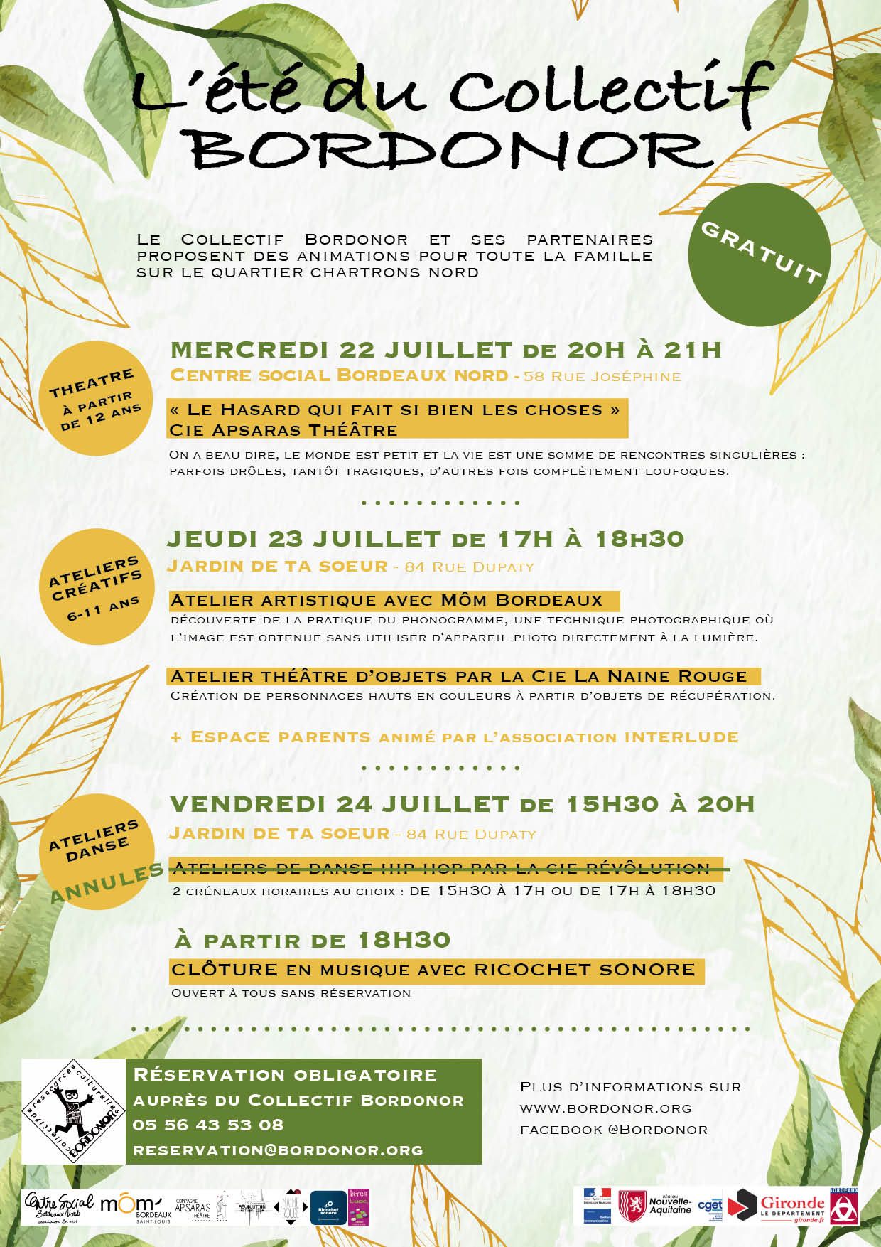 Création du Collectif Bordonor par le théâtre la Boîte à Jouer (BAJ), le Centre social Bordeaux Nord (CSBN), le GLOB Théâtre, le café musique Le Thelonious.